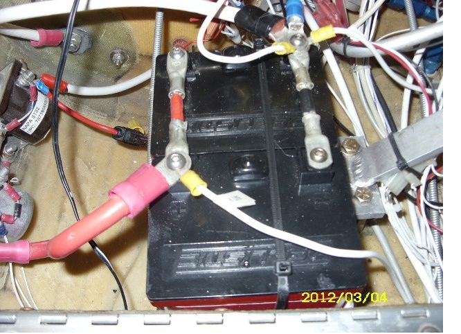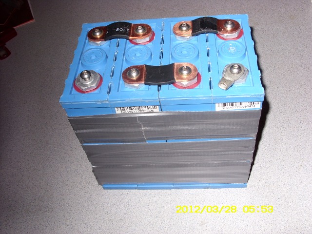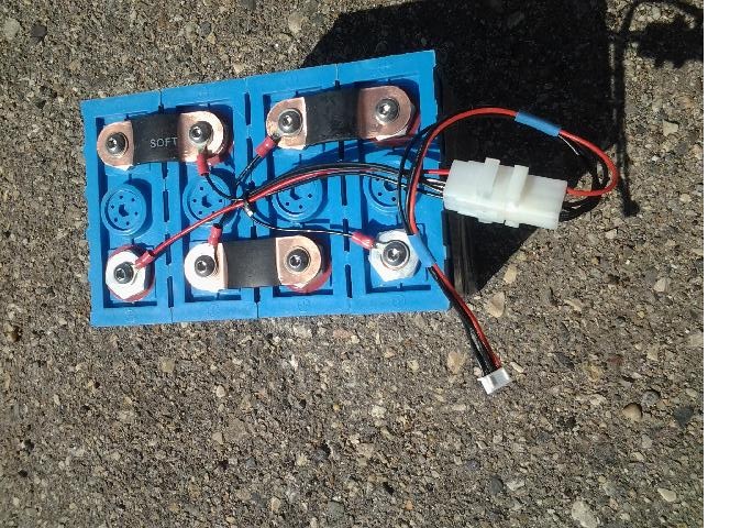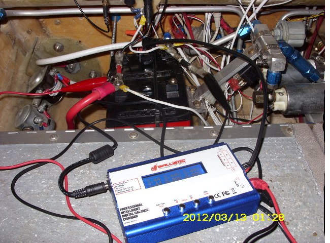 You can get individual battery cells and build your own battery. The unit on left is a four cell (prismatic = flat), 40AH battery from all-battery.com. They kindly included the connecting straps. The battery is about the size of a PC925 lead-acid but half the weight and twice the charge capacity. Got it after deciding to replace my front battery too. This should give over two hours current in case of alternator failure. Home made adapter for hookup to Ballistic balance charger is shown.