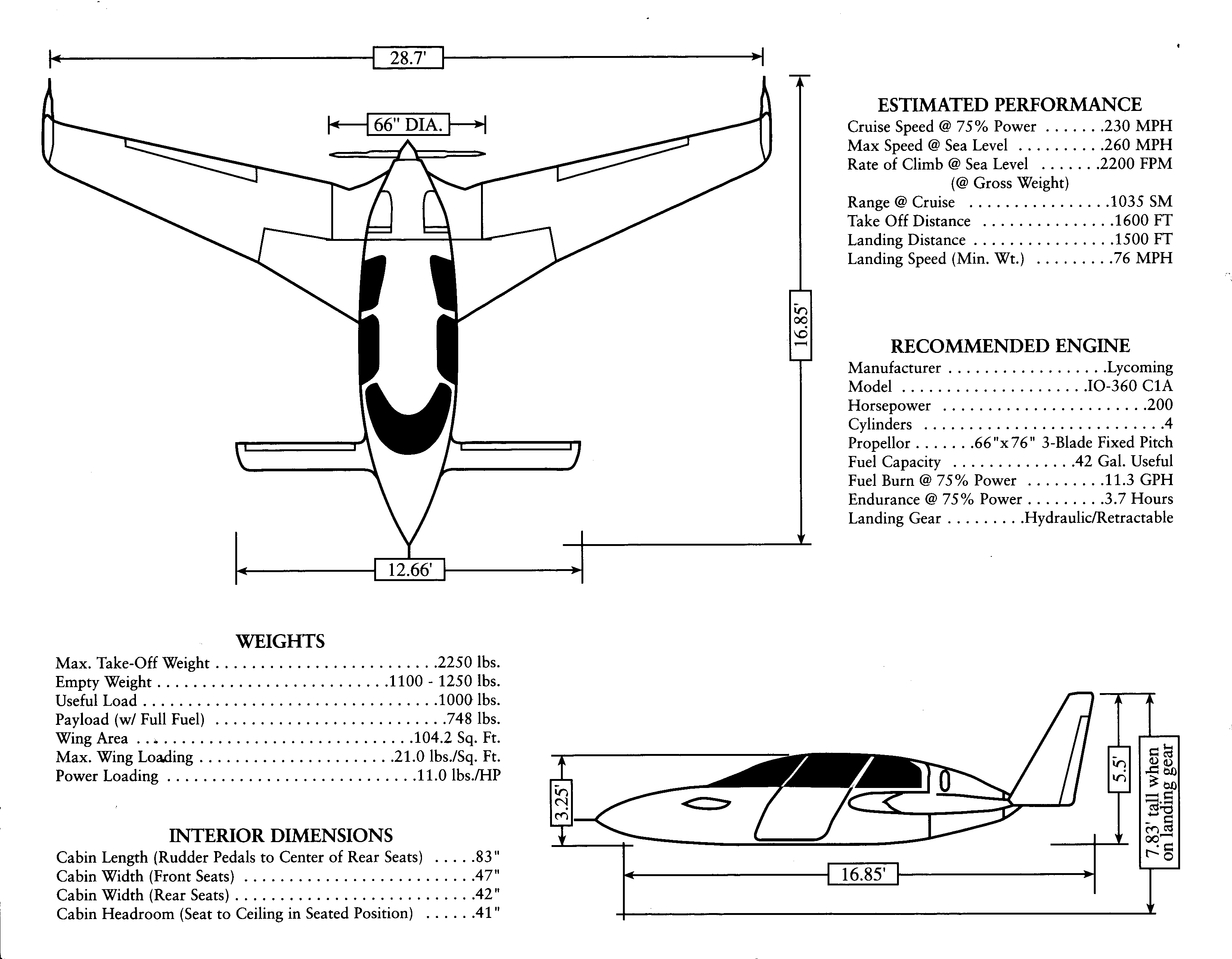 - Fuel efficiency: best about 5 gal/hr near 120 kts.