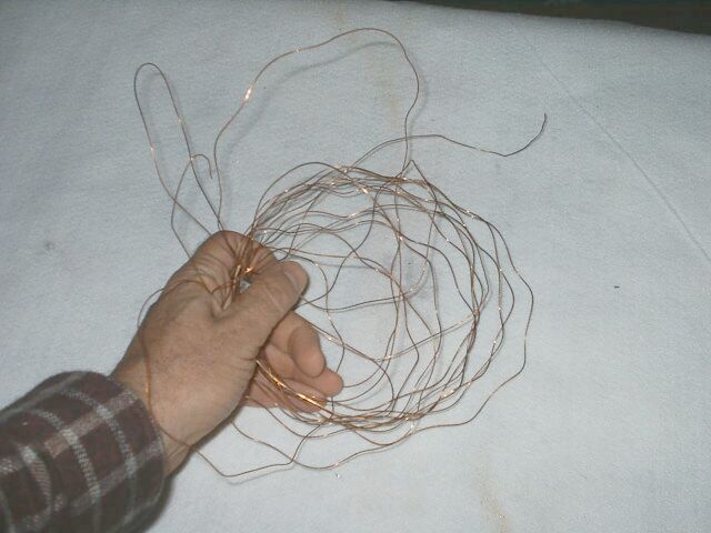 08/04/04: Third flightThis one didn't go right. The engine vibrated a lot and the plane rolled hard to the right and the temperatures were high inspite of only 65F OAT. The plane was harder to control with sharp left aileron needed to keep it level. After landing I found a 25 foot wire wrapped around the propeller. It came out of the SCAT oil breather tubing that was pointing out of the airflow cowling exit. That probably caused the vibration and the extra prop torque to the right and possibly the harder working engine generated extra heat. Will have to check for prop damage. Amazing how one ounce of wire can cause so much problems. On the plus side, I had more front ballast this time and the pitch control improved a lot.